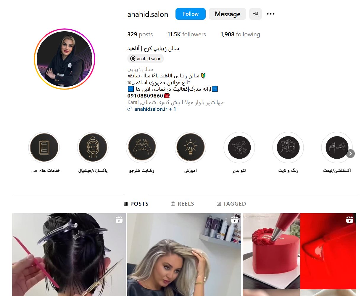 - آیدی اینستاگرام: anahid.salon