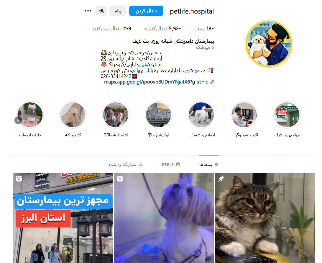 - آیدی اینستاگرام: petlife.hospital